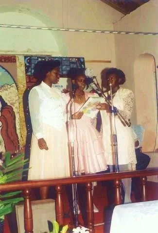 Singing in Budlong Harmonious trio sometime in the 1990s